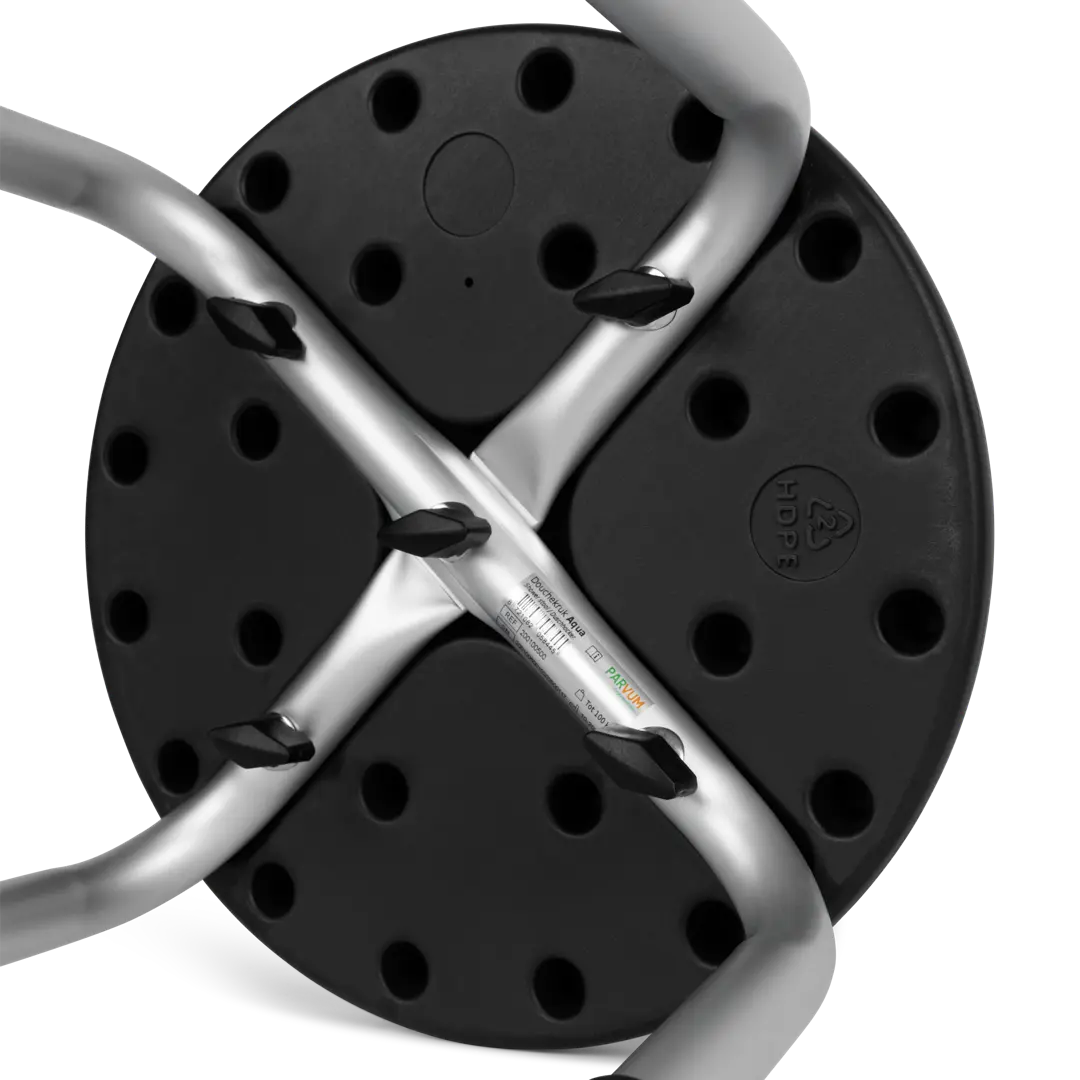 Shower stool Aqua by Parvum is a round shower stool that is easy to assemble, without tools. With a diameter of only 31 cm and a seat height that is adjustable this shower stool is suitable for almost any bathroom.