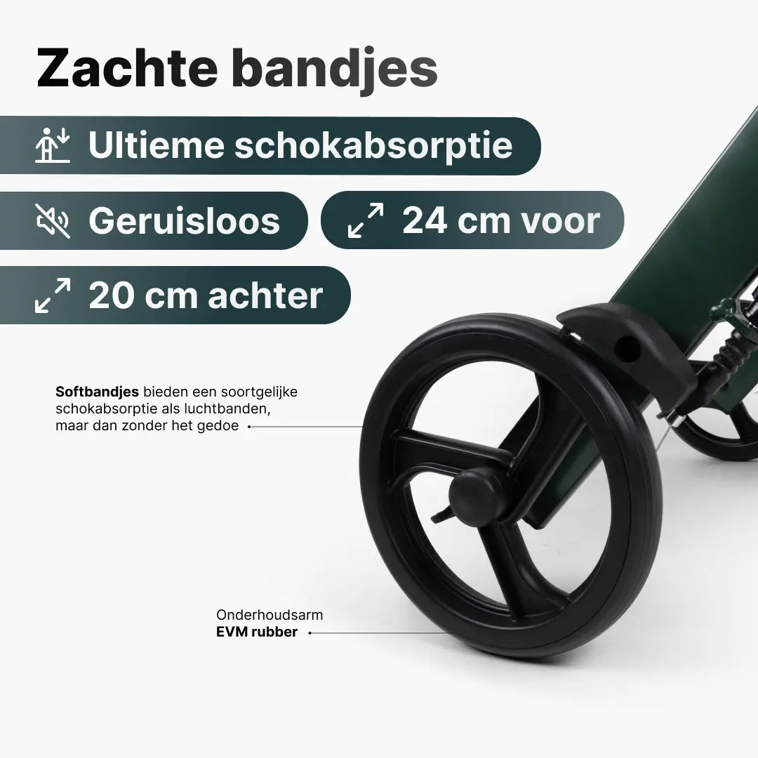 Softbandjes zijn de luxe keuze voor rollatorbanden. Voorbij zijn de dagen van massieve plastic wielen. Dit type wiel biedt voordelen vergelijkbaar aan die van luchtbanden, zonder dat u daarvoor de hoofdprijs betaalt of u zorgen moet maken over lekke banden.